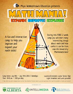 This FREE two-week camp is geared towards students in grade 6-8. Its purpose is to both improve basic math skills for the students and stimulate general interest in mathematics.