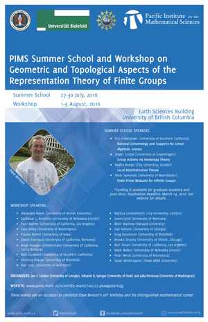 PIMS Summer School and Workshop on Geometric and Topological Aspects of the Representation Theory of Finite Groups