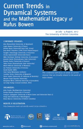 The conference will focus on areas of current interest that are broadly related to the work of Rufus Bowen.