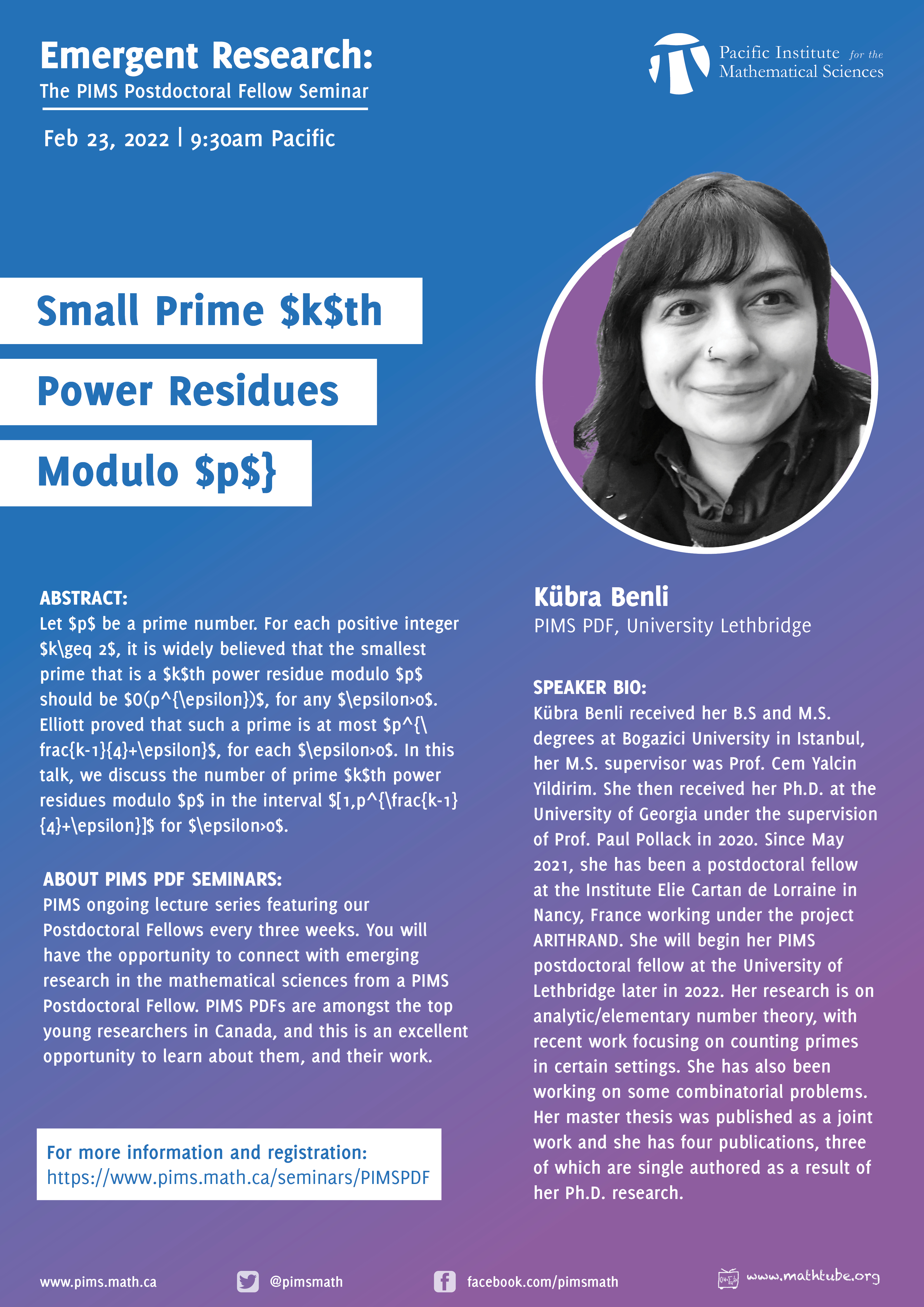 The PIMS Postdoctoral Fellow Seminar: Kübra Benli